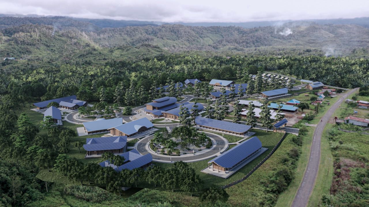 Bupati Pegunungan Bintang, Spei Yan Bidana, ST. M.Si terkait pembangunan kampus baru Universitas Okmin Papua dan rencana peresmian pada Agustus 2025.